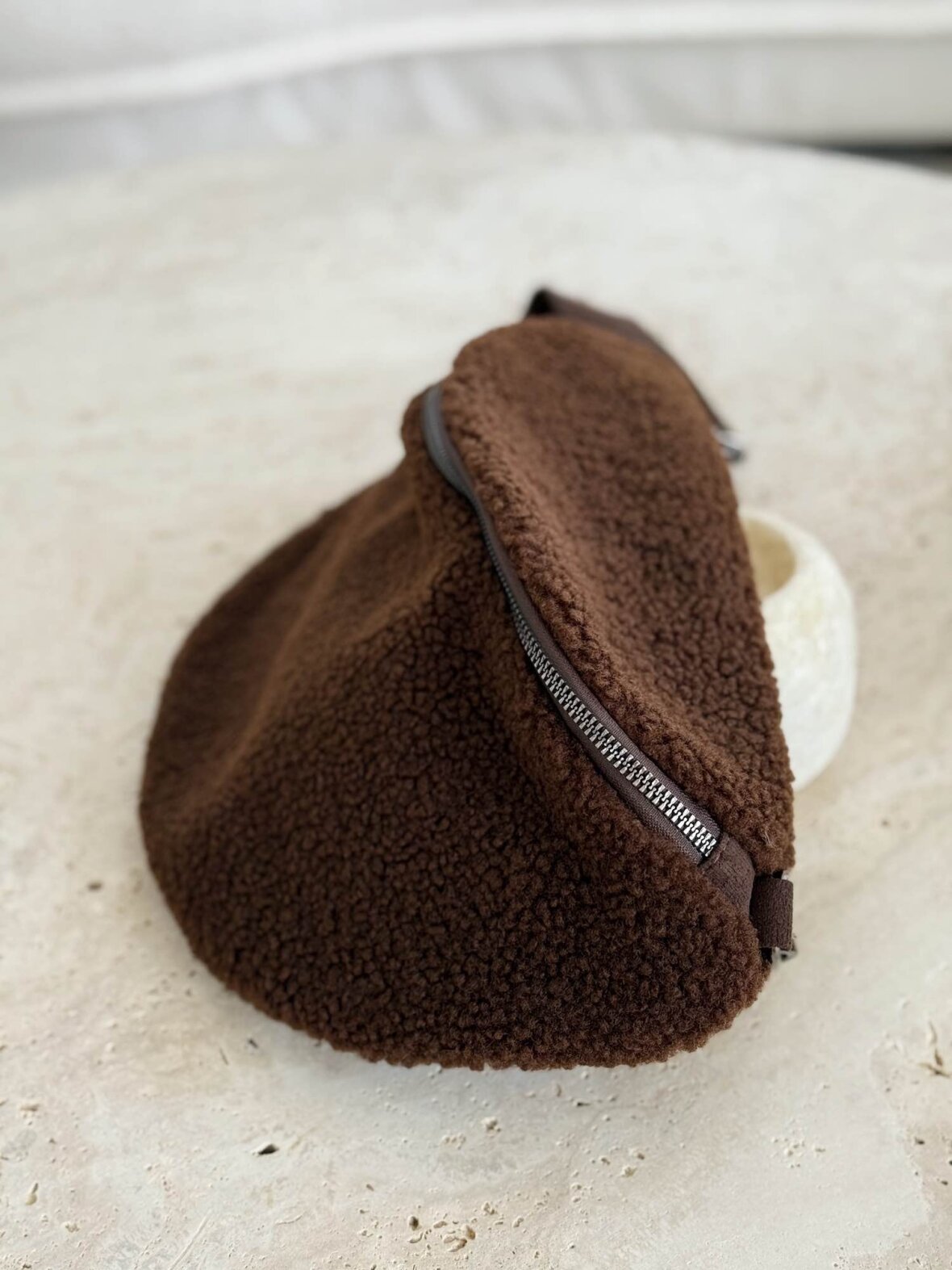 Chokoladebrun crossbody taske i blød teddyfleece, der giver et afslappet og moderne udtryk. Tasken har justerbar rem og lynlåslukning i sølv-look. Perfekt til dine essentials på farten – og en varm kontrast til efterårs- og vintergarderoben. Et casual statement piece til både hverdag og weekend.