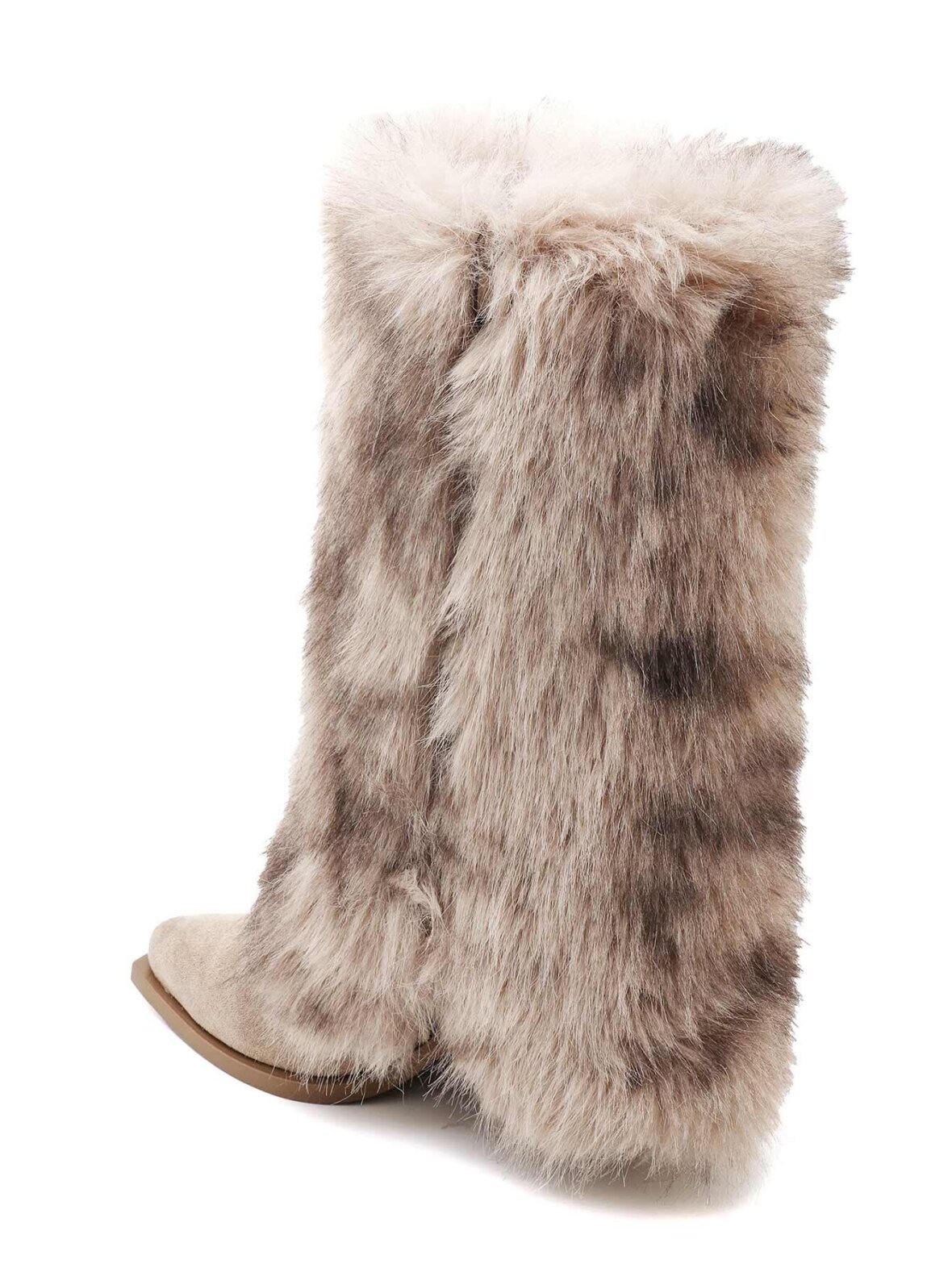 Varme og luksuriøse støvler med fyldigt kunstpels i gråbrune nuancer, der giver et eksklusivt vinterlook. Den bløde ruskindslook-base og solide sål sikrer både komfort og holdbarhed, perfekt til kolde dage. Brug dem som statement-piece til kjoler, leggings eller jeans, når du vil skabe et stilfuldt og iøjnefaldende outfit med masser af personlighed.