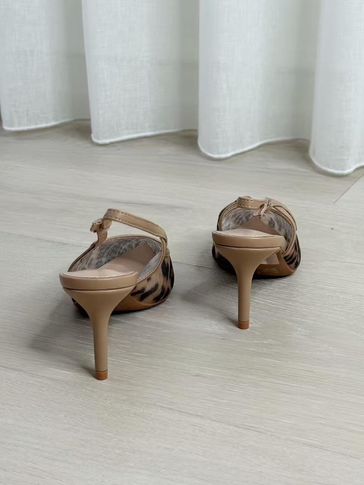 Trendy slingback-hæle med leopardmønster i elegant mesh. De spidse snuder og den smalle hæl skaber et feminint og sofistikeret look, mens det transparente materiale giver et moderne twist. Perfekte til både fest og hverdagsbrug, hvor du vil tilføje et strejf af kant og luksus til dit outfit.