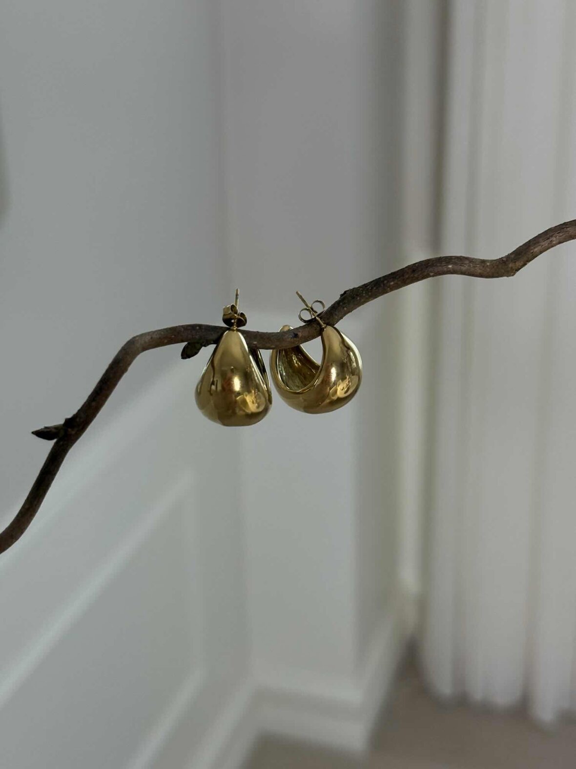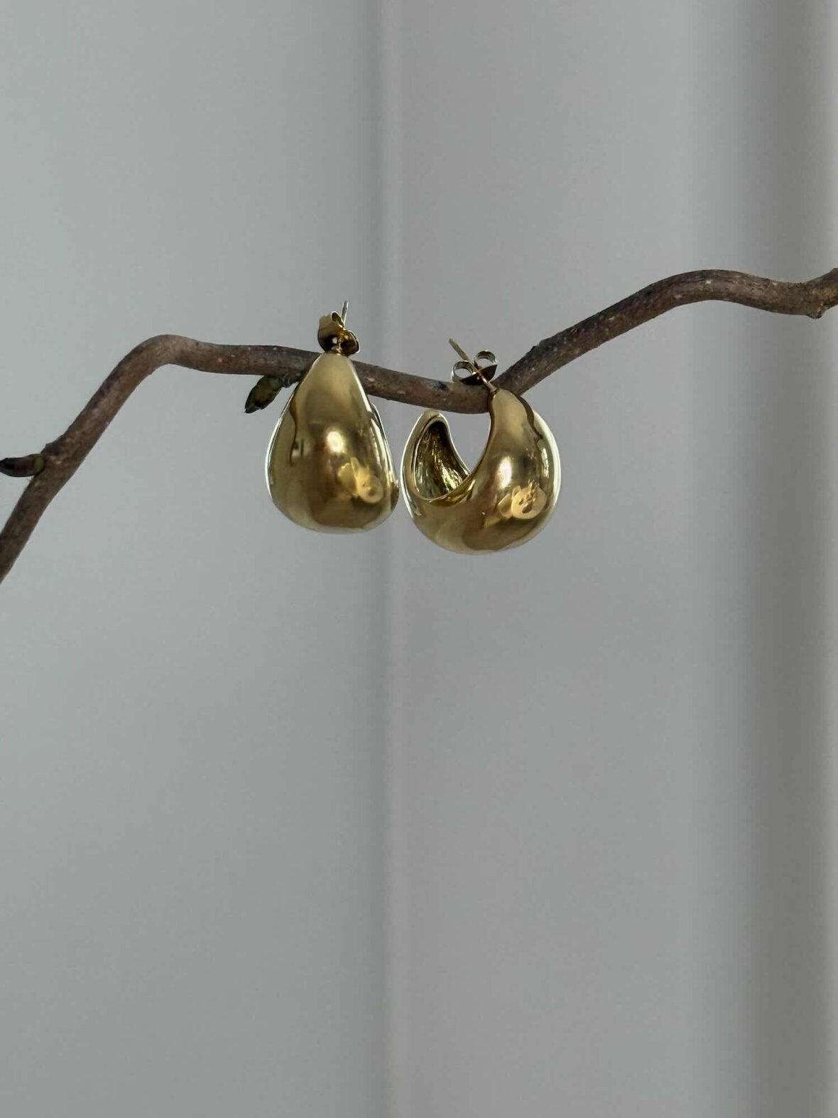 Eksklusive guldbelagte stainless steel dråbeøreringe med et smukt, skulpturelt udtryk. Den bløde, organiske form giver et moderne og elegant look, der passer perfekt til både hverdag og fest. Letvægtsdesign og høj glans gør dem til et tidløst smykke i enhver smykkesamling.