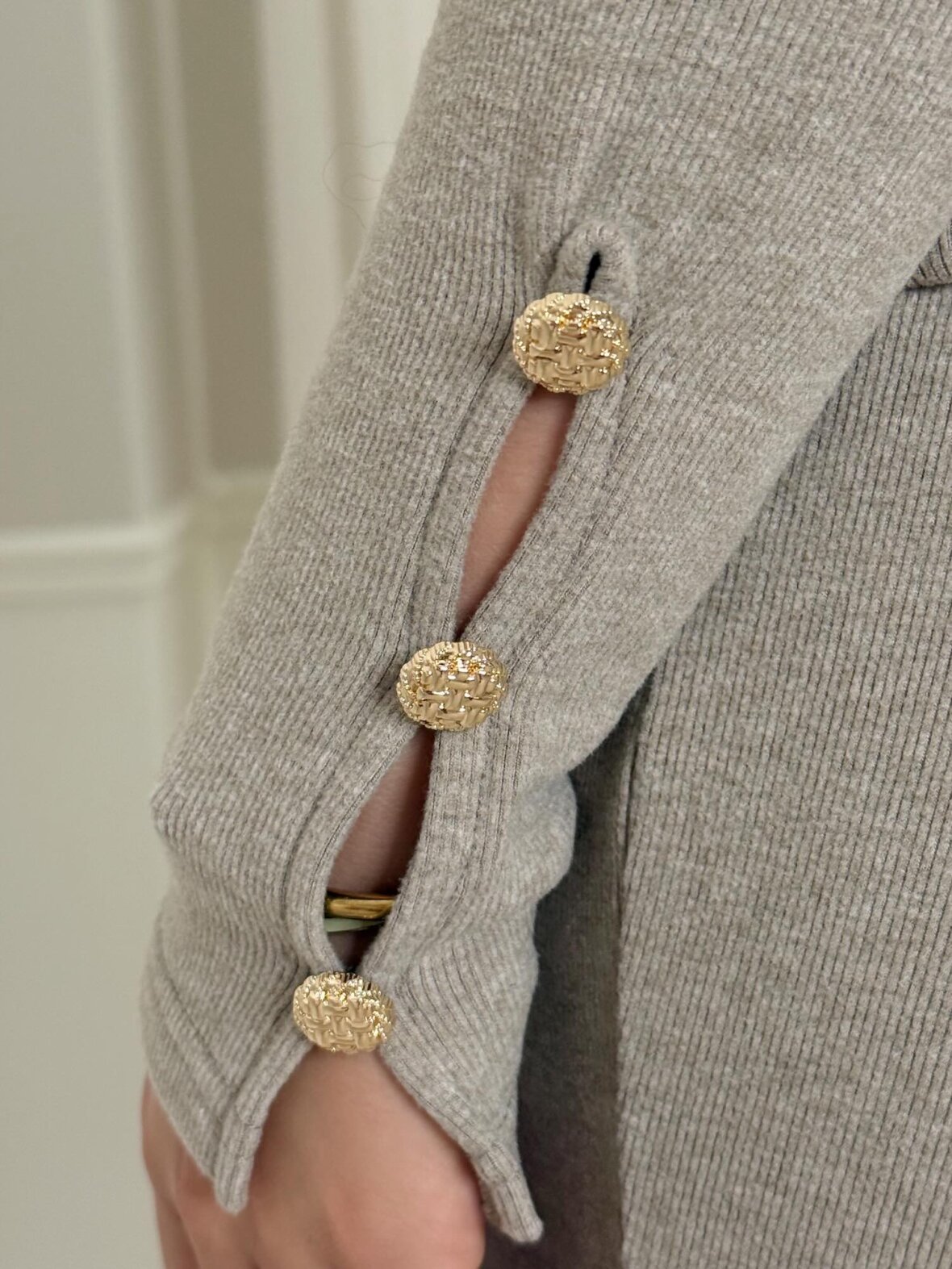 Blød og stilren bluse fra Buch Copenhagen i en lækker ribbet kvalitet. Blusen har lange ærmer med elegante guldknapper ved håndleddene, der giver et feminint touch. Perfekt til både hverdag og aften, hvor du ønsker et komfortabelt, men eksklusivt look.