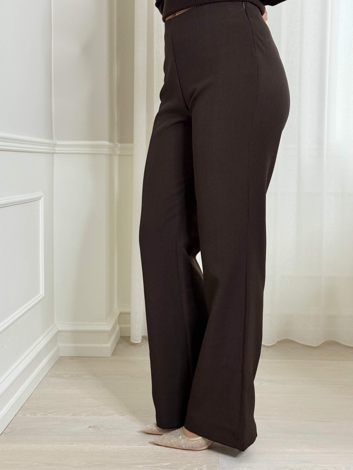 Stilrene bukser i en mørk chokoladebrun nuance med elegant, lige pasform og let svaj i benene. Bukserne er designet med fokus på komfort og et klassisk udtryk, der nemt kan styles op eller ned. Perfekte med en skjorte og hæle til kontoret eller med en strik og støvler til hverdagsbrug. Et tidløst must-have i garderoben.