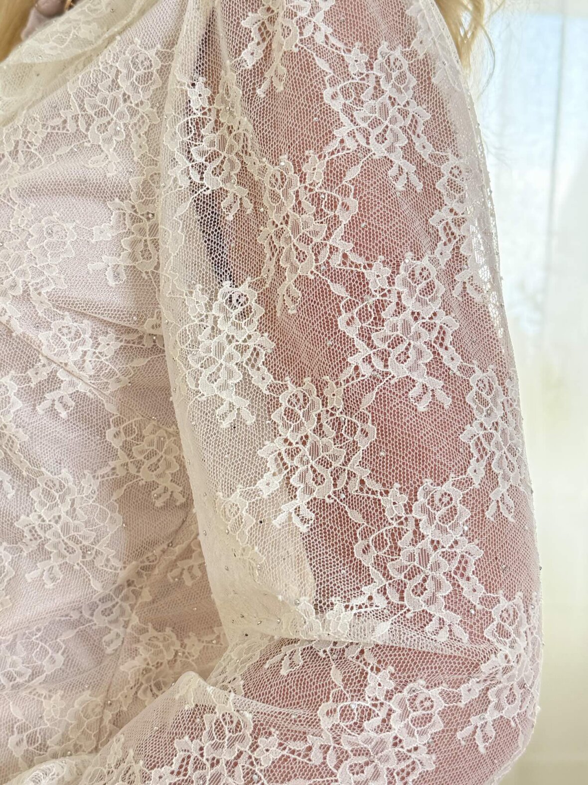 Romantisk blonde skjorte i en smuk cremefarvet nuance. Blusen har elegante flæsedetaljer foran og ved ærmerne, som giver et feminint og eksklusivt udtryk. Den delikate blondekvalitet tilfører et sofistikeret look, perfekt til både hverdag og fest. Style den med jeans for et chic hverdagslook eller med nederdel for et klassisk, elegant outfit.