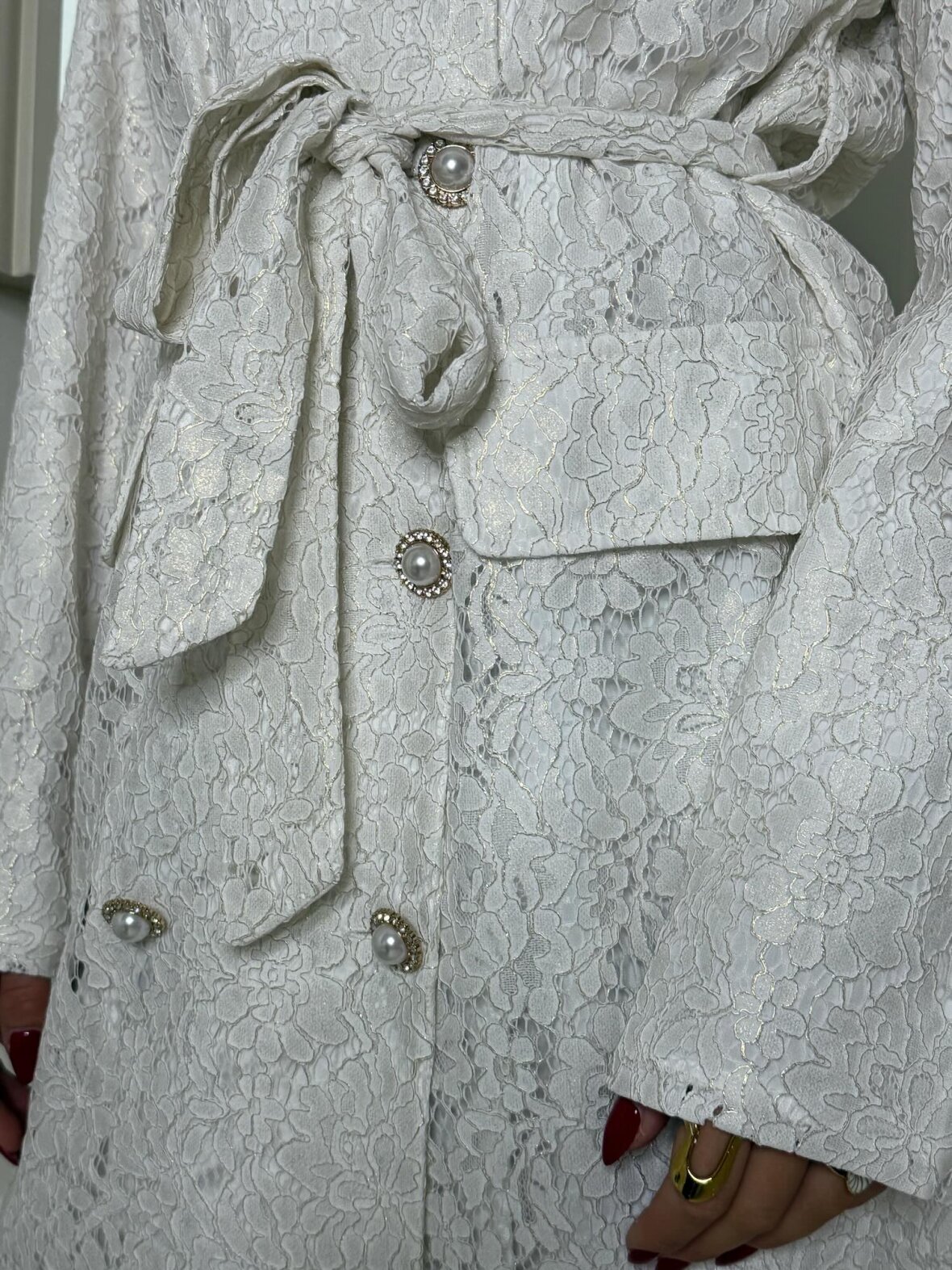 Elegant hvid blazer kjole i smuk blonde, designet med dobbeltradede knapper og bindebælte, der fremhæver taljen. Den strukturerede pasform skaber et sofistikeret og feminint udtryk. Kan bæres som kjole eller let jakke. En eksklusiv, tidløs blazer kjole fra Buch Copenhagen til særlige anledninger.