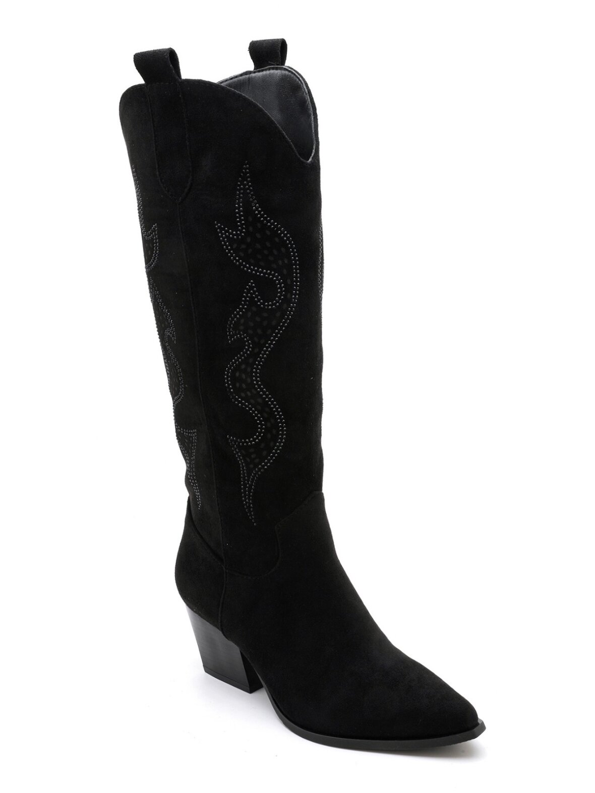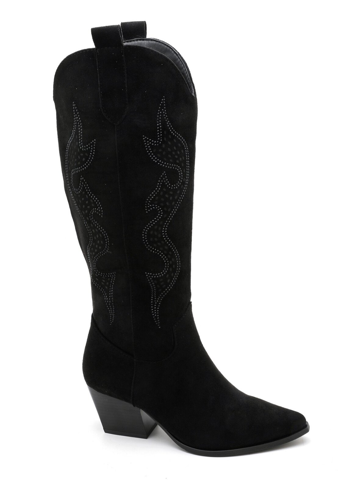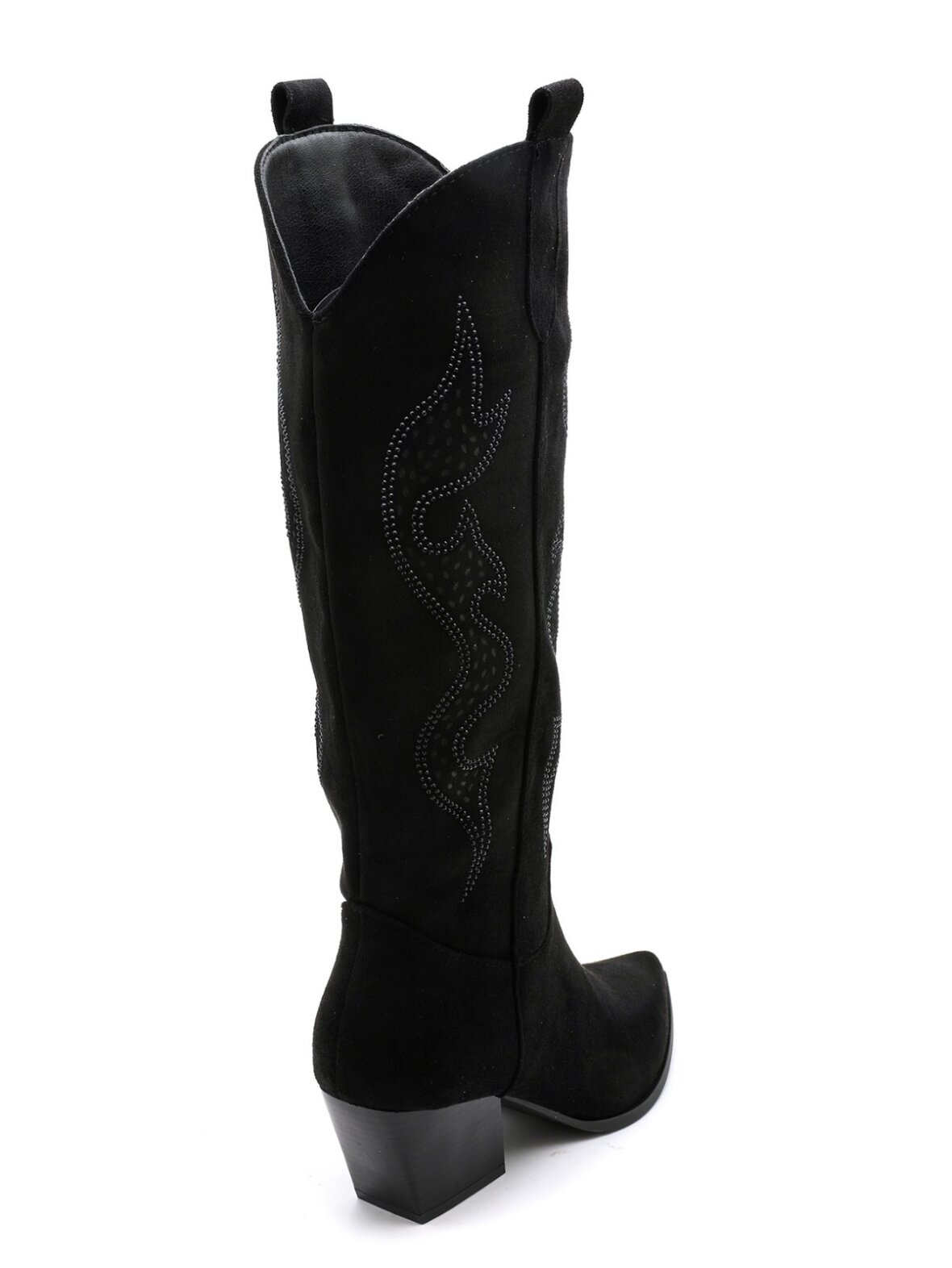 Smukke sorte cowboy-støvler i blødt suede-look med elegante western-syninger. Den spidse snude og stabile blokhæl skaber et feminint, eksklusivt udtryk. Perfekte til både kjoler, nederdele og jeans, når du ønsker et stilrent, moderne og sofistikeret Buch Copenhagen look.