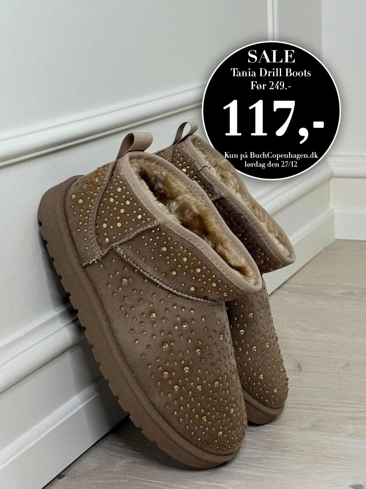 Varme og stilfulde khaki vinterstøvler med blød faux fur-foring, der giver maksimal komfort. De fine guldfarvede studs tilfører et feminint og eksklusivt touch, mens den solide sål gør dem ideelle til både inde- og udendørs brug. Et perfekt valg til kolde dage med fokus på både stil og funktion.