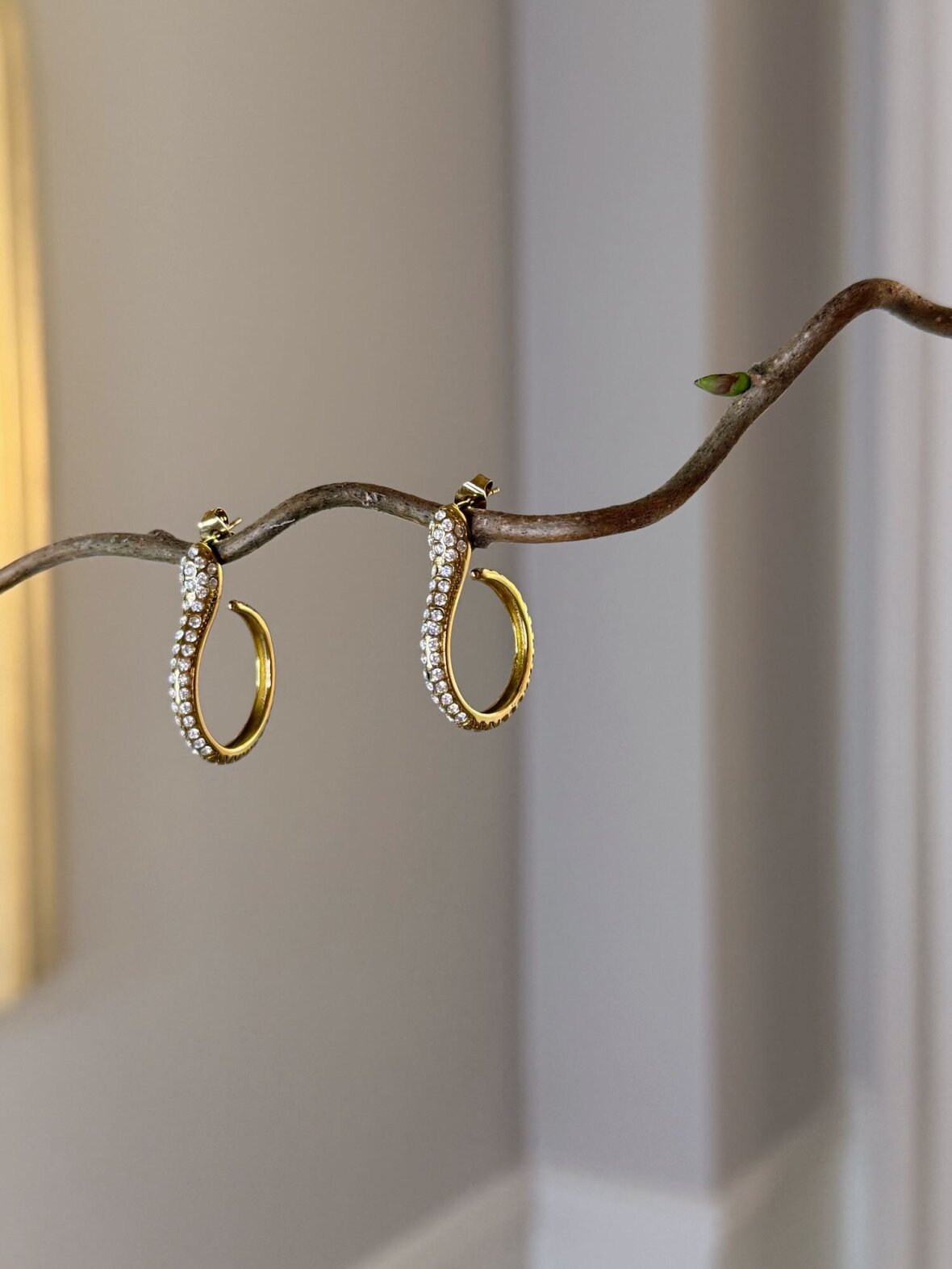 Smukke guldbelagte stainless steel hoops prydet med funklende zirconia i to rækker for et elegant og eksklusivt udtryk. De lette, tidløse øreringe giver et sofistikeret shine til både hverdag og fest og er perfekte til dig, der elsker klassisk glamour med moderne finesse.