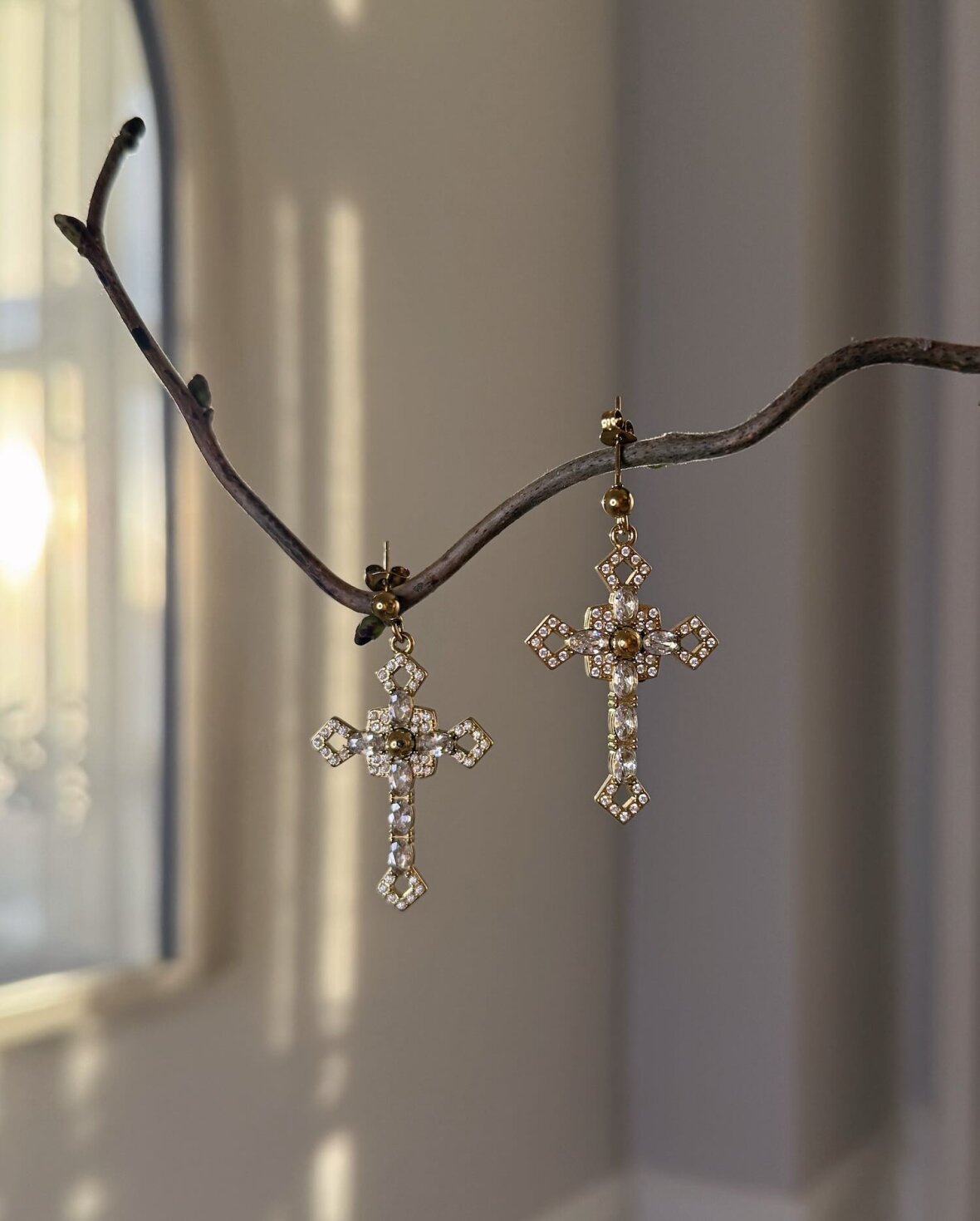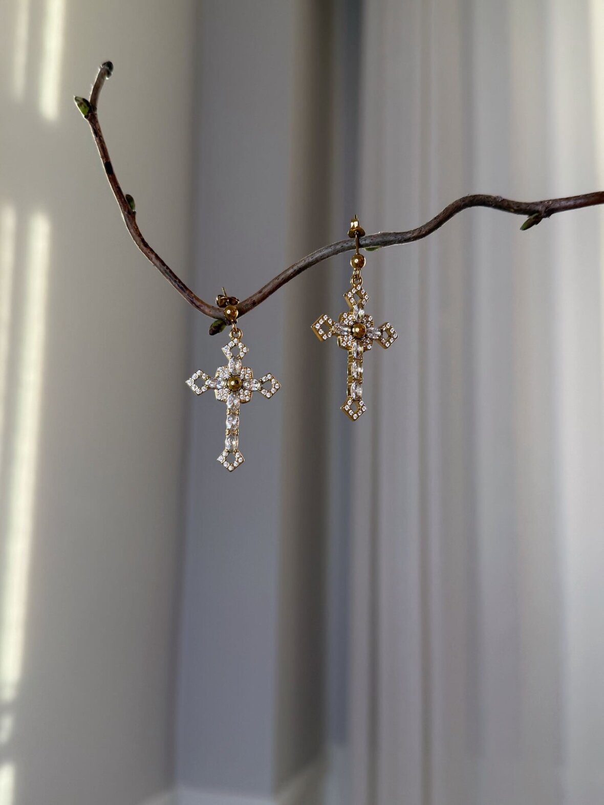 Eksklusive guldbelagte korsøreringe i stainless steel, designet med funklende klare zirconia for et elegant og glamourøst udtryk. De detaljerige kors giver et sofistikeret look, der både kan bæres til hverdag og særlige anledninger. Et tidløst smykke, der tilfører outfit'et et strejf af luksus.