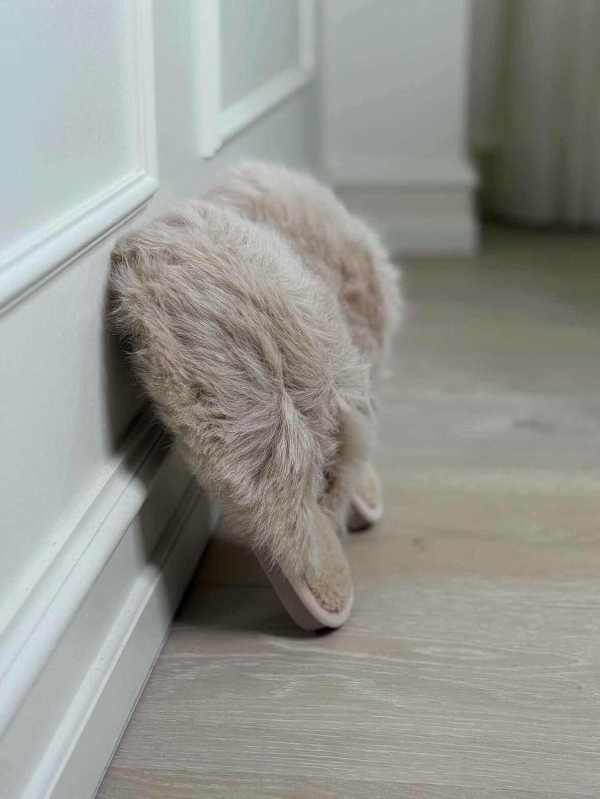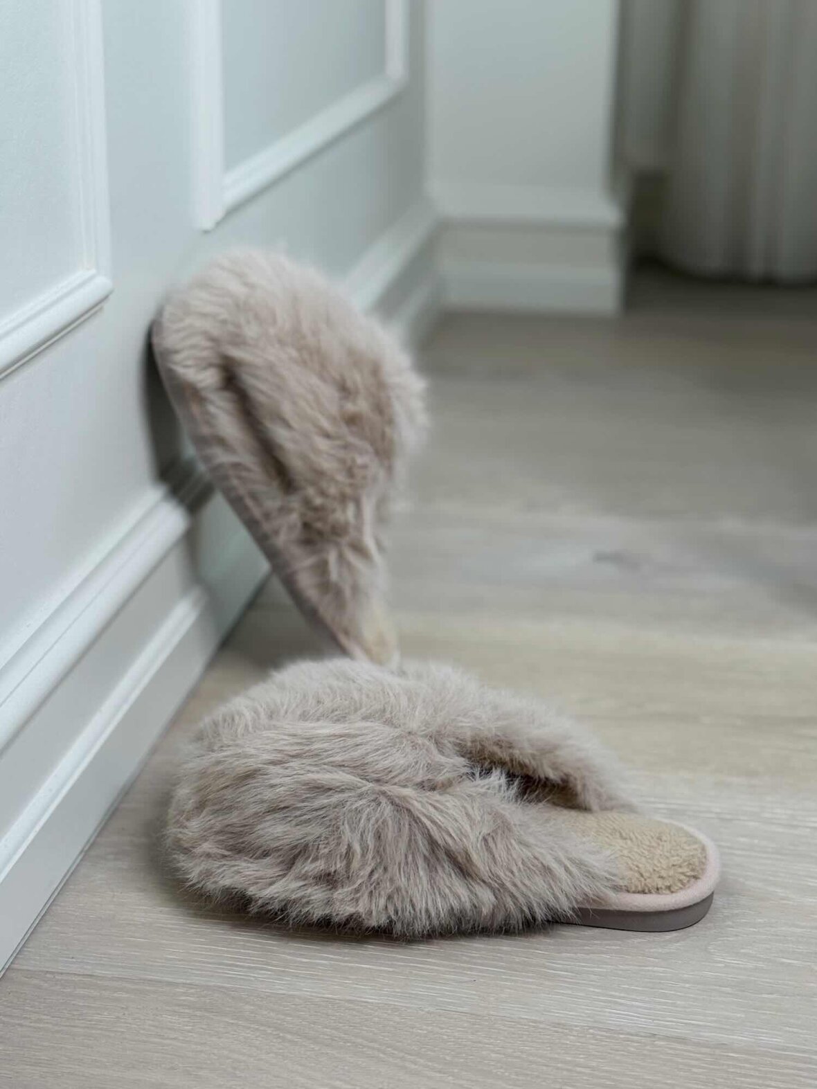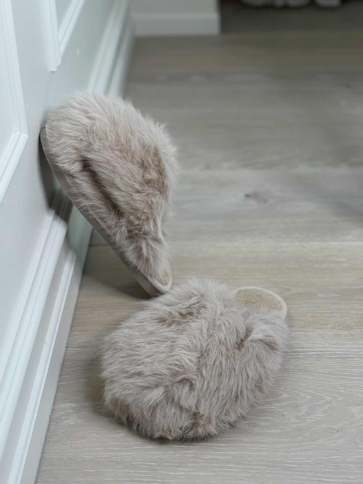 Ultra-bløde khaki sutsko med fluffy faux fur, der giver en varm og luksuriøs følelse ved hvert skridt. Den lette og fleksible sål gør dem perfekte til hverdagsbrug i hjemmet. Et feminint og hyggeligt valg, når komfort og blødhed er i fokus.
