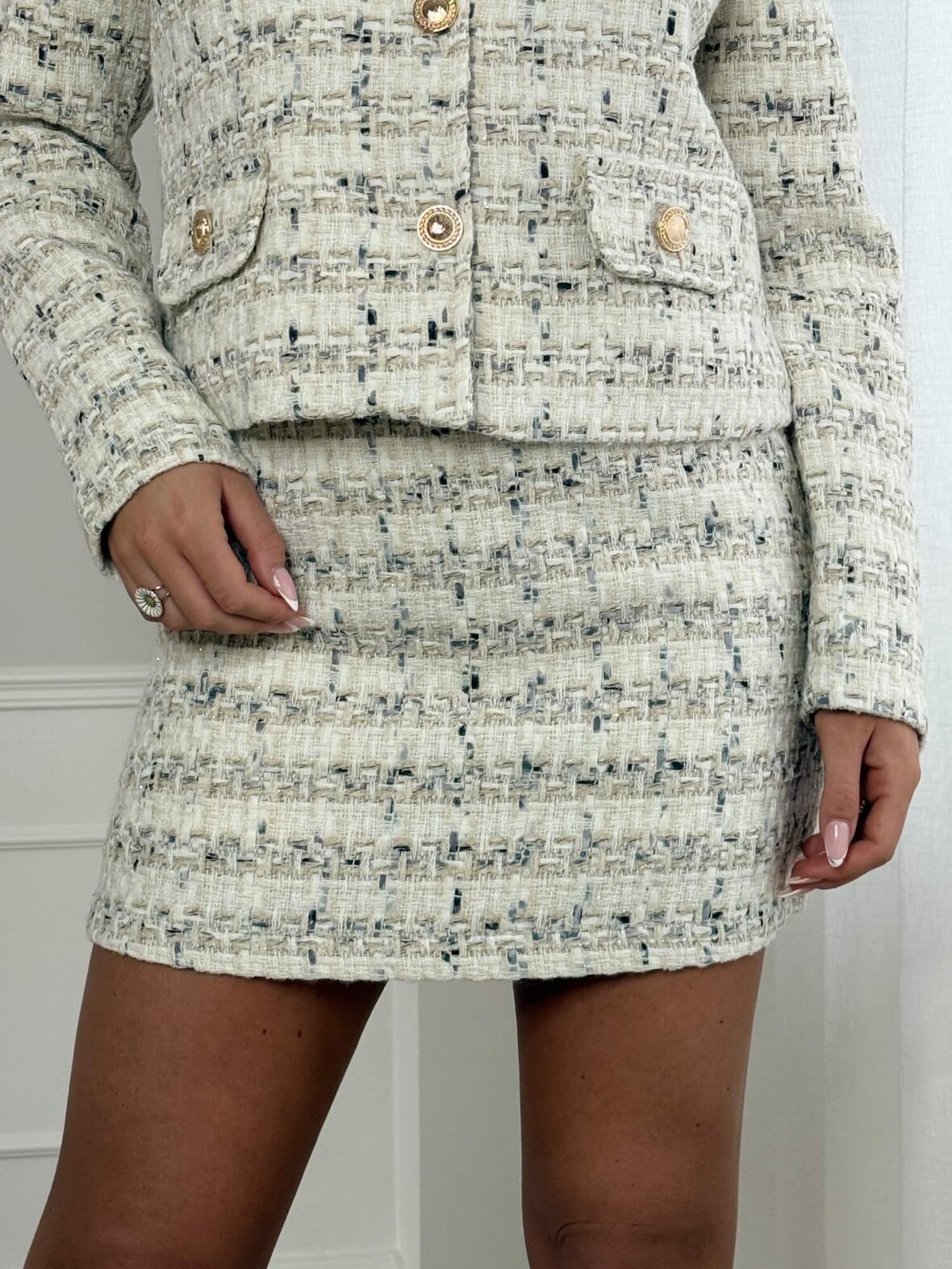 Denne elegante bouclénederdel fra Buch Copenhagen er designet med fokus på et klassisk og feminint udtryk. Nederdelen er fremstillet i en smuk boucléstruktur i lyse, harmoniske nuancer, der giver et eksklusivt og tidløst look. Den tætsiddende pasform fremhæver silhuetten på elegant vis og gør nederdelen ideel både alene og som del af et matchende sæt. Det sofistikerede design gør nederdelen velegnet til både hverdag, arbejde og mere festlige anledninger, hvor et stilrent og feminint udtryk ønskes.