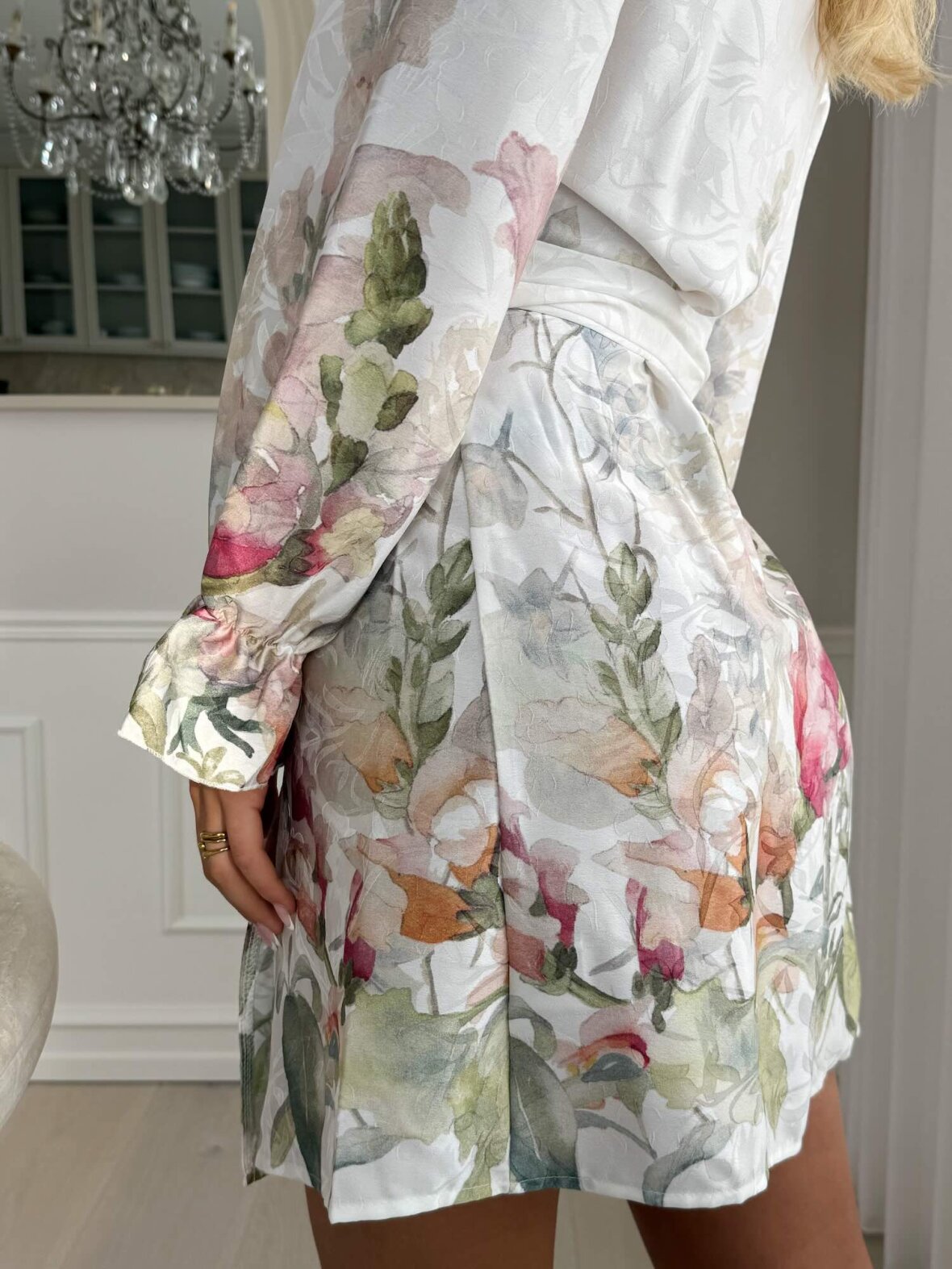 Denne feminine, korte kjole fra Buch Copenhagen er designet i et let og luftigt materiale med smukt blomsterprint og elegant slå-om-look. Kjolen har lange ærmer med let volumen, V-udskæring og bindebånd i taljen, som fremhæver figuren på en flatterende måde. Det bløde fald giver et let og eksklusivt udtryk, mens længden gør kjolen både anvendelig og elegant. Perfekt til både hverdag, sommerfester, middage og særlige anledninger, hvor du ønsker et feminint og velklædt look.