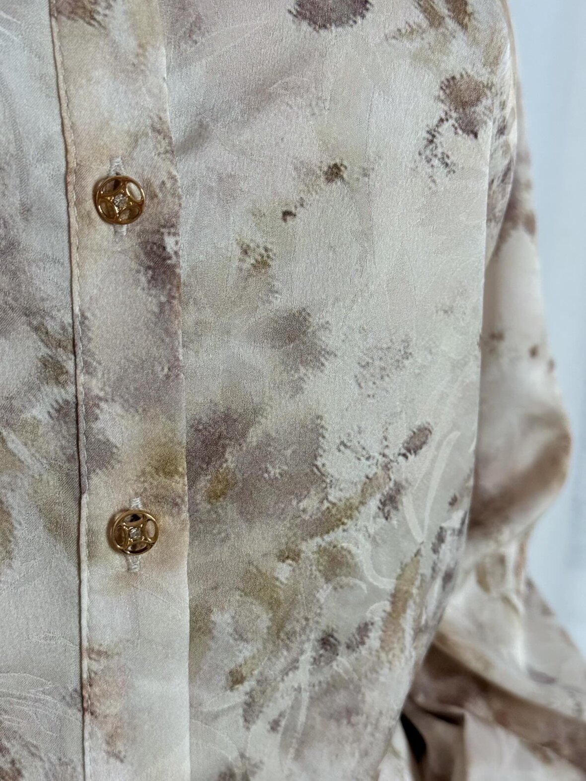 Denne elegante bluse er udført i en lys, blomsterprintet nuance med fine beige, sand og støvede grønne toner, som giver et eksklusivt og feminint udtryk. Blusen har en let, silkeblød kvalitet med smukke læg ved brystet og delikate detaljer ved manchetterne, der tilfører designet et raffineret præg. Det bløde fald gør blusen behagelig at bære og nem at style både til bukser, nederdele og mere formelle looks. En tidløs bluse, der passer perfekt til både hverdag og særlige anledninger.