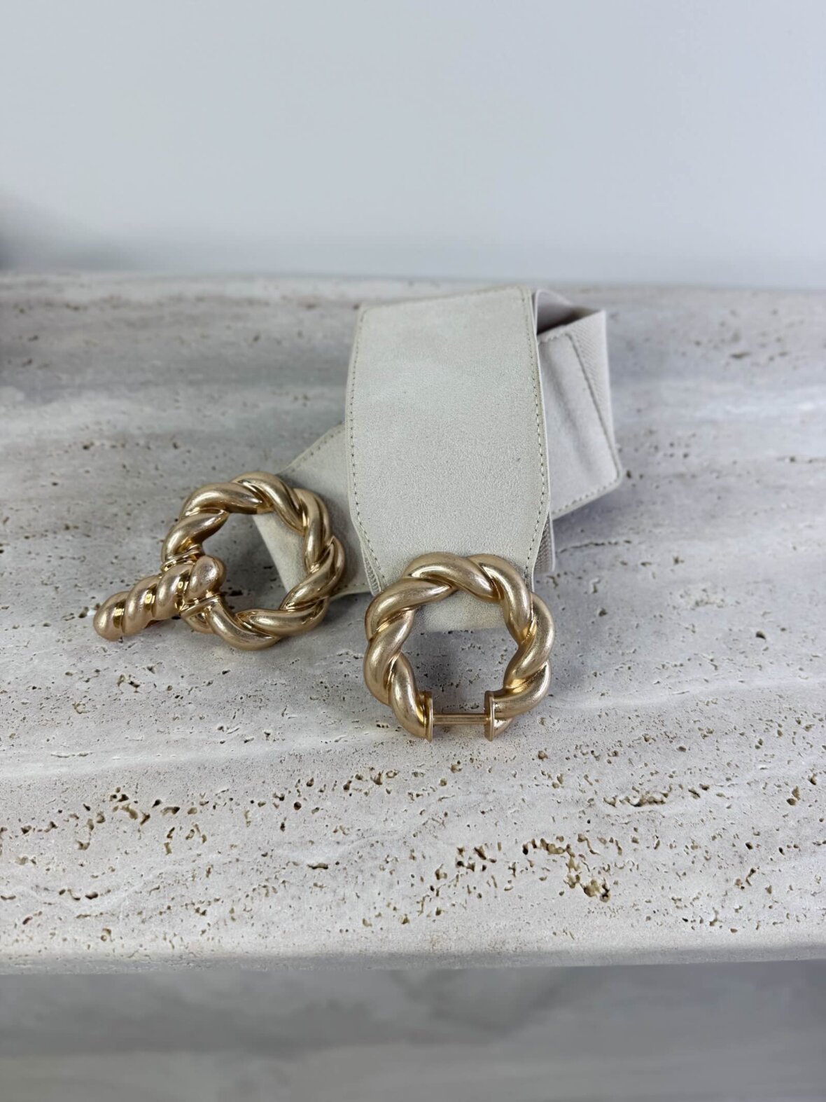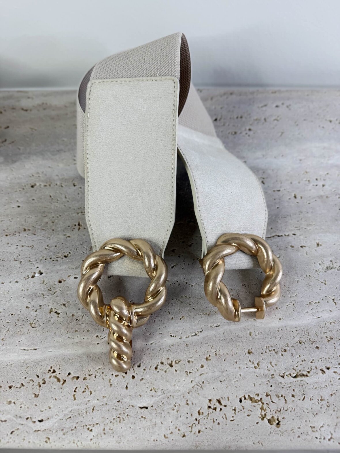 Dette elegante stretch bælte er designet med et markant, guldfarvet spænde i flettet look, der giver et eksklusivt og tidløst udtryk. Det elastiske materiale sikrer en behagelig pasform og gør bæltet nemt at tilpasse taljen. Perfekt til at fremhæve silhuetten over kjoler, blazere og tunikaer – både til hverdag og festlige anledninger. Det dekorative dobbelte spænde tilfører et sofistikeret statement og gør bæltet til et stilfuldt accessory i garderoben. Et ideelt valg til modebevidste looks i 2026.