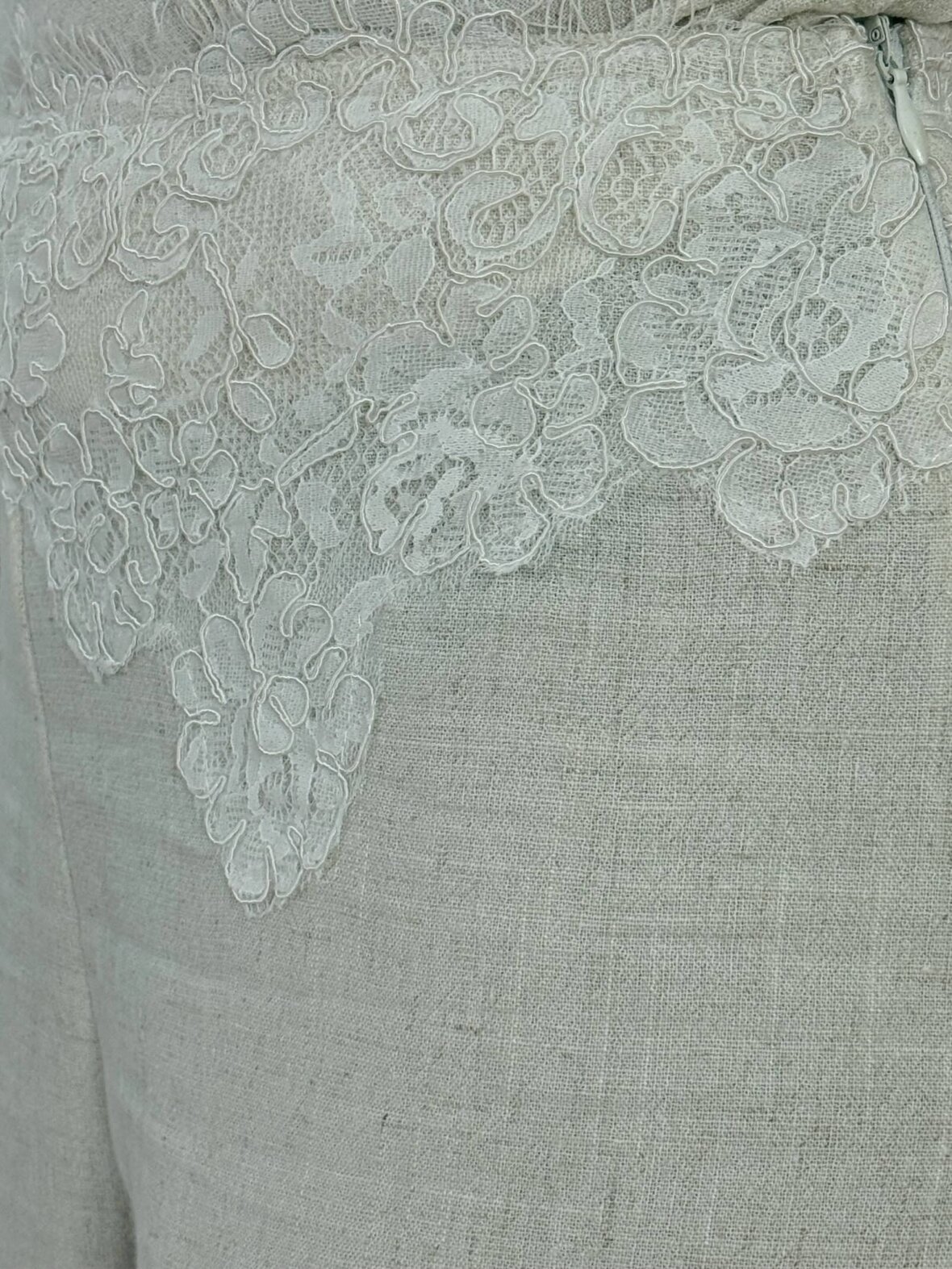 Disse elegante bukser er fremstillet i blød hør look, som giver et eksklusivt udtryk og en behagelig fornemmelse mod huden. Modellen har brede ben med et smukt fald, der skaber en feminin og afslappet silhuet. Den dekorative blondekant i taljen tilfører et romantisk og sofistikeret touch, som gør bukserne velegnede til både festlige anledninger og stilfulde hverdagslooks. Micro suede-kvaliteten giver bukserne struktur uden at føles tunge, og pasformen sikrer høj komfort hele dagen. Et tidløst valg, der nemt kan styles med toppe, skjorter eller kimonoer.