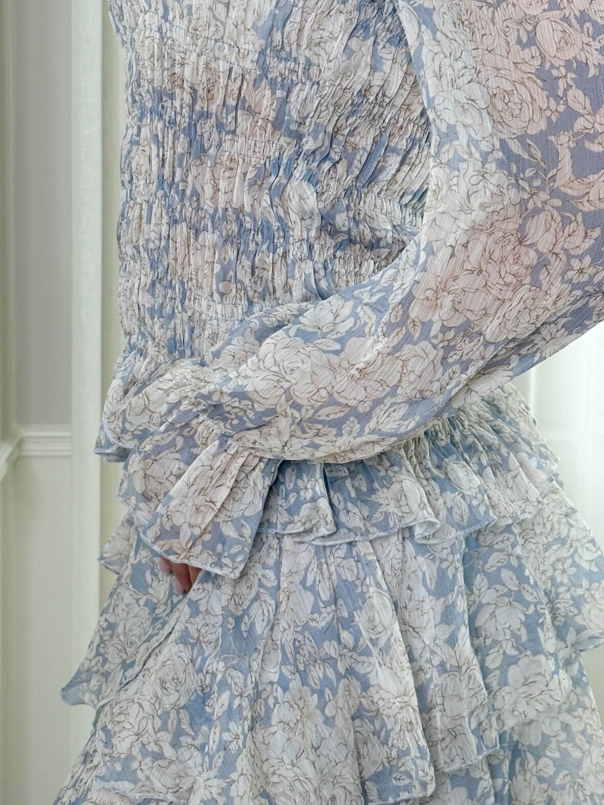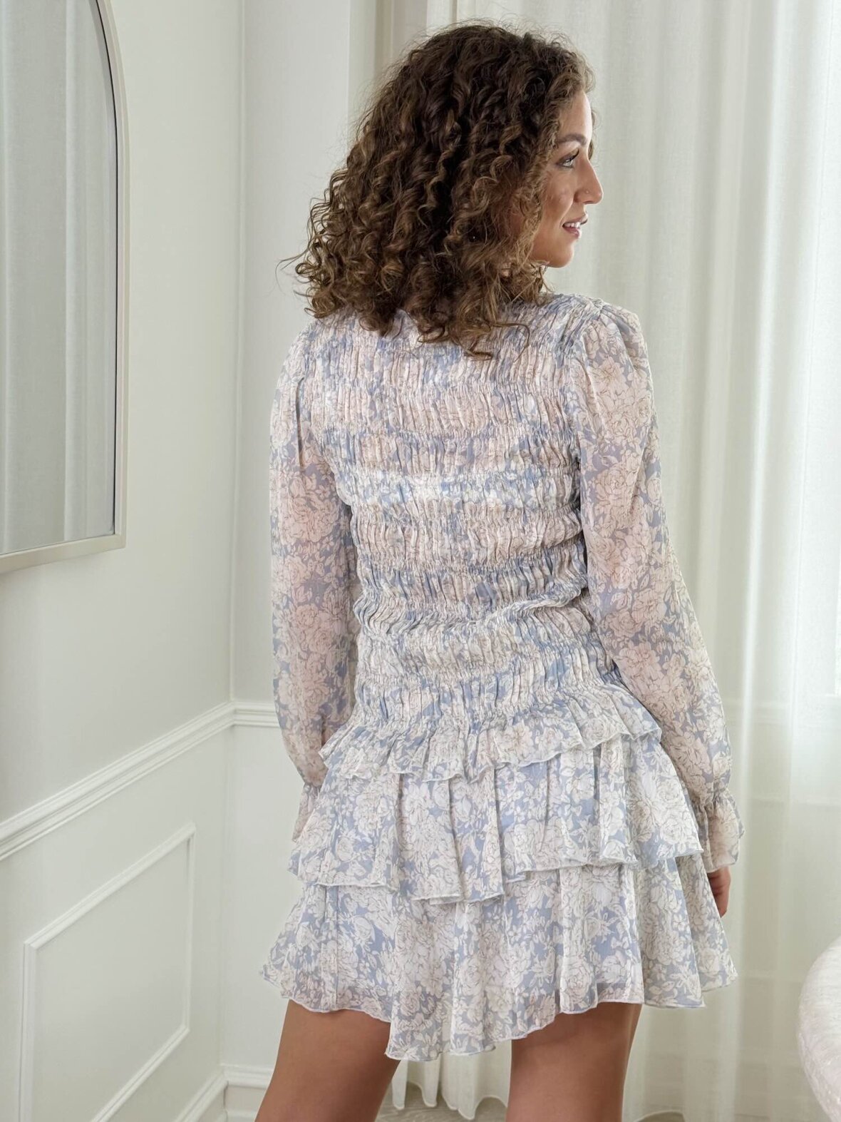 Denne lyseblå blomstrede bluse fra Buch Copenhagen er en feminin og elegant bluse med let og eksklusivt udtryk. Det smukke blomsterprint og de elastiske smock-detaljer skaber en flatterende og komfortabel pasform. Blusen har lange ærmer med fine flæsekanter, der tilfører et romantisk touch. Perfekt til både hverdag og pænere brug, hvor den kan styles med jeans, nederdel eller bukser for et stilfuldt outfit.
