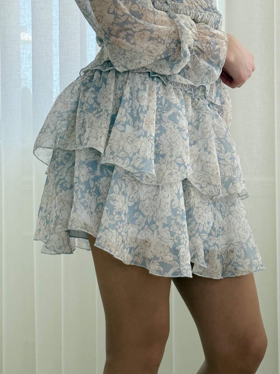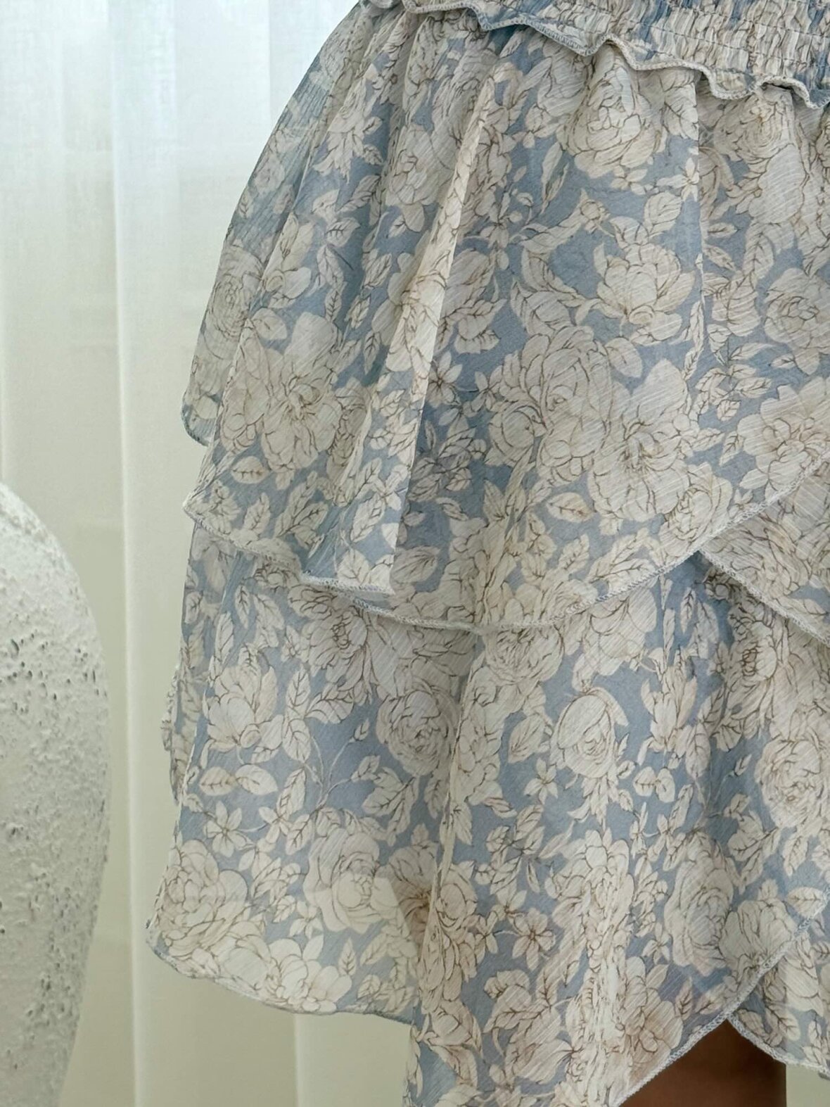 Denne lyseblå blomstrede nederdel fra Buch Copenhagen er en feminin og elegant nederdel med let og luftigt udtryk. De smukke flæselag skaber en bevægelig og flatterende silhuet, mens den elastiske smock-talje sikrer en komfortabel pasform. Det fine blomsterprint tilfører et romantisk look. Perfekt til både hverdag og fest, hvor den kan styles med top, bluse eller strik for et stilfuldt og feminint outfit.