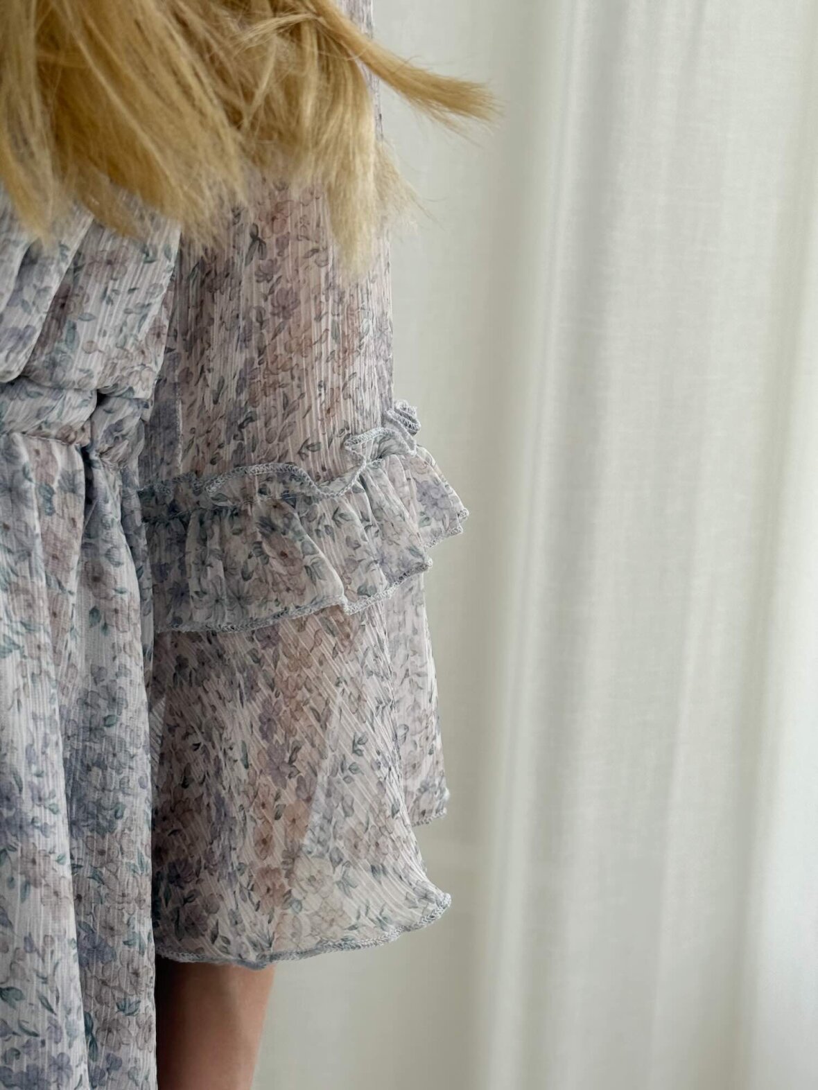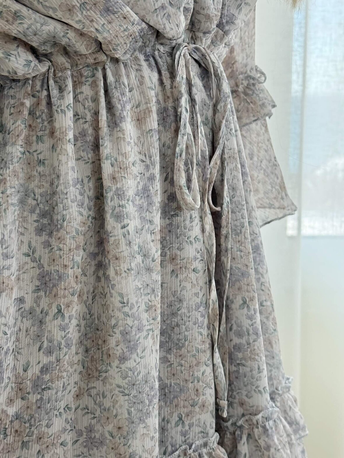 Denne lyseblå blomstrede kjole fra Buch Copenhagen er en feminin og elegant kjole med let og luftigt udtryk. Det fine print og de smukke flæsedetaljer skaber en romantisk og flatterende silhuet, mens bindebåndet i taljen fremhæver figuren. Kjolen har lange ærmer og v-udskæring, der giver et feminint look. Perfekt til både hverdag og fest, hvor den kan styles med sandaler eller støvler.