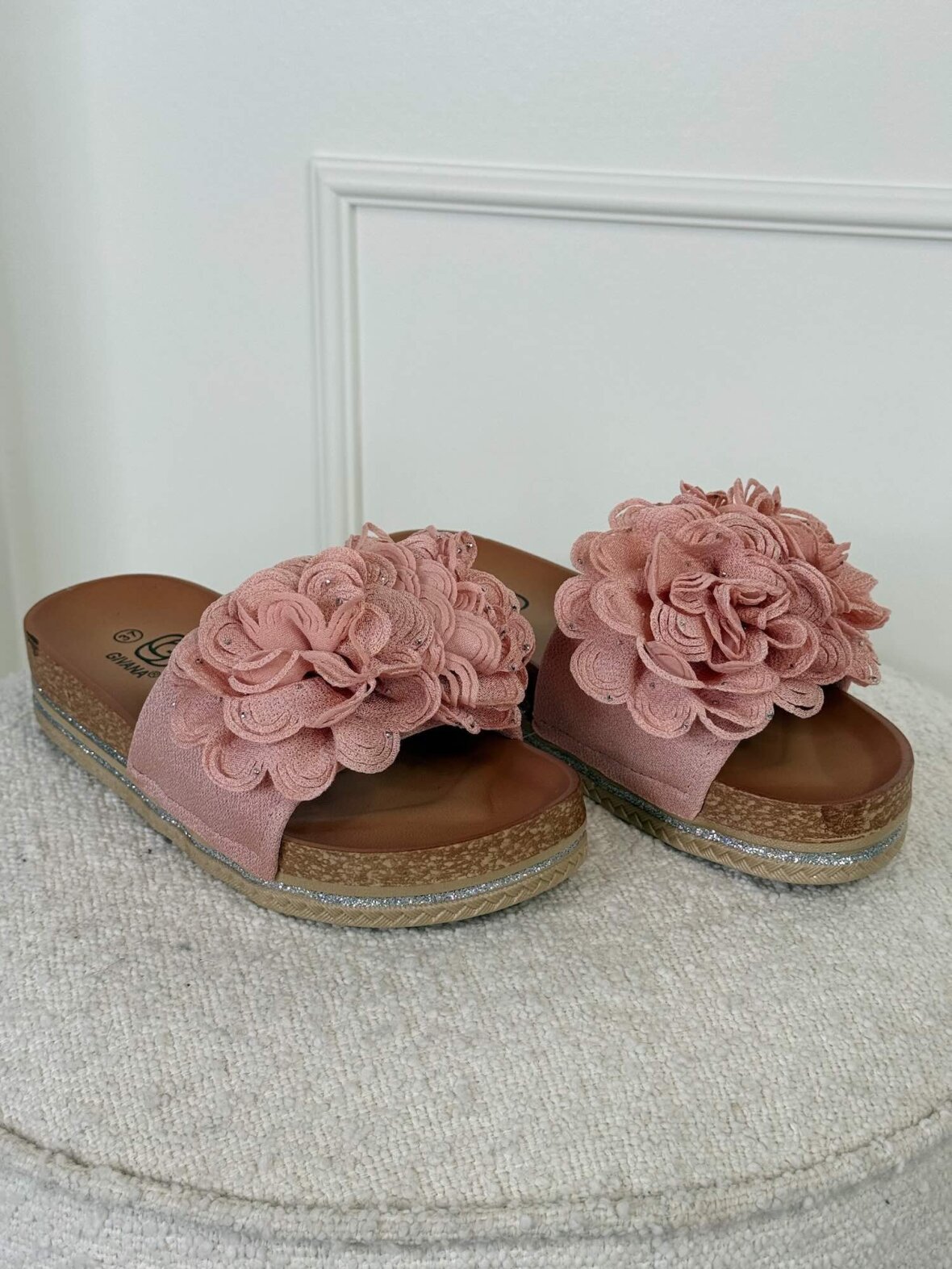 Feminine sandaler i smuk rosa nuance med dekorative blomsterdetaljer, der giver et romantisk og elegant udtryk. Den komfortable plateau-sål med fine detaljer sikrer både højde og god komfort, mens slip-on designet gør dem nemme at tage på. Perfekte til sommerkjoler, ferier og stilfulde hverdagslooks.