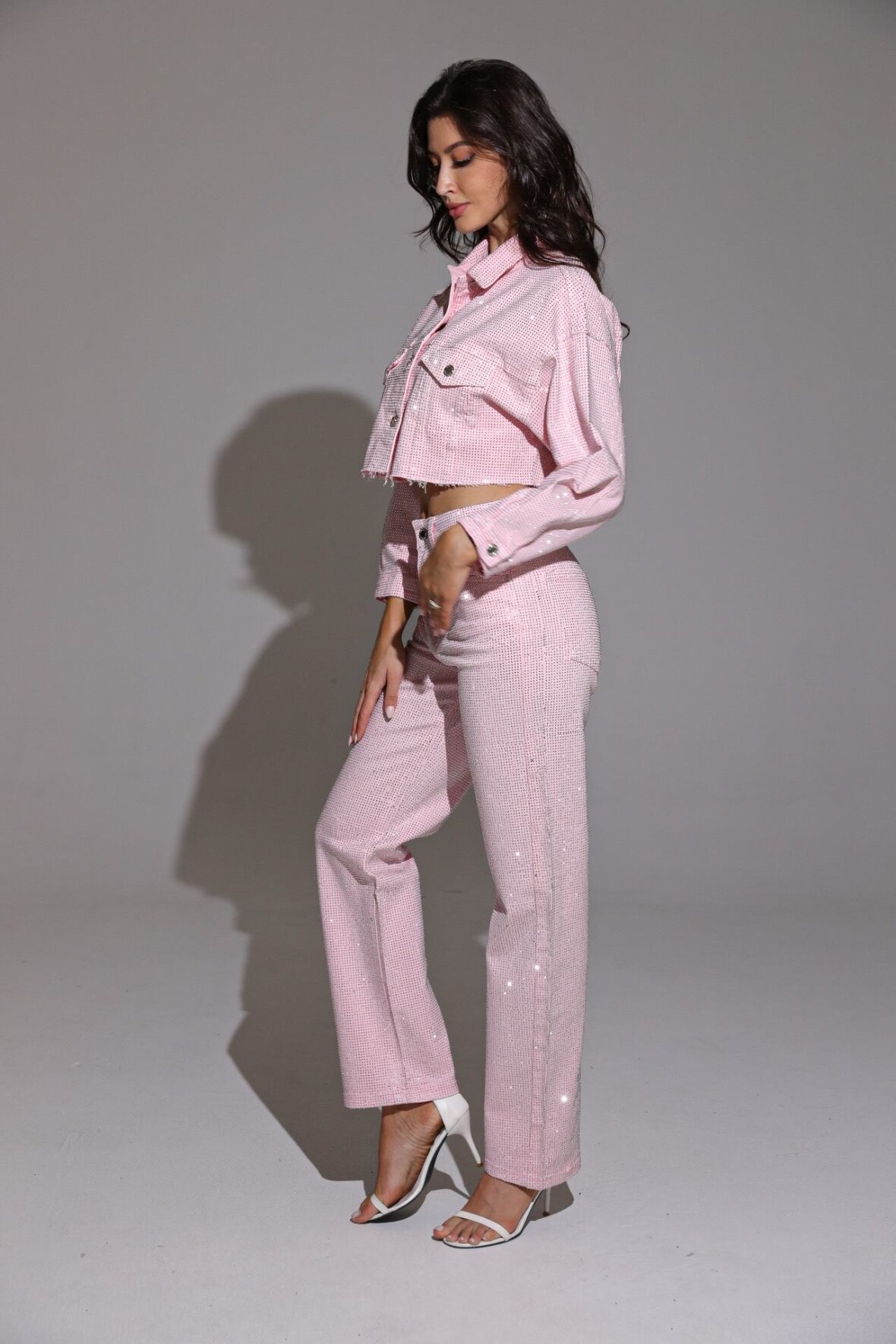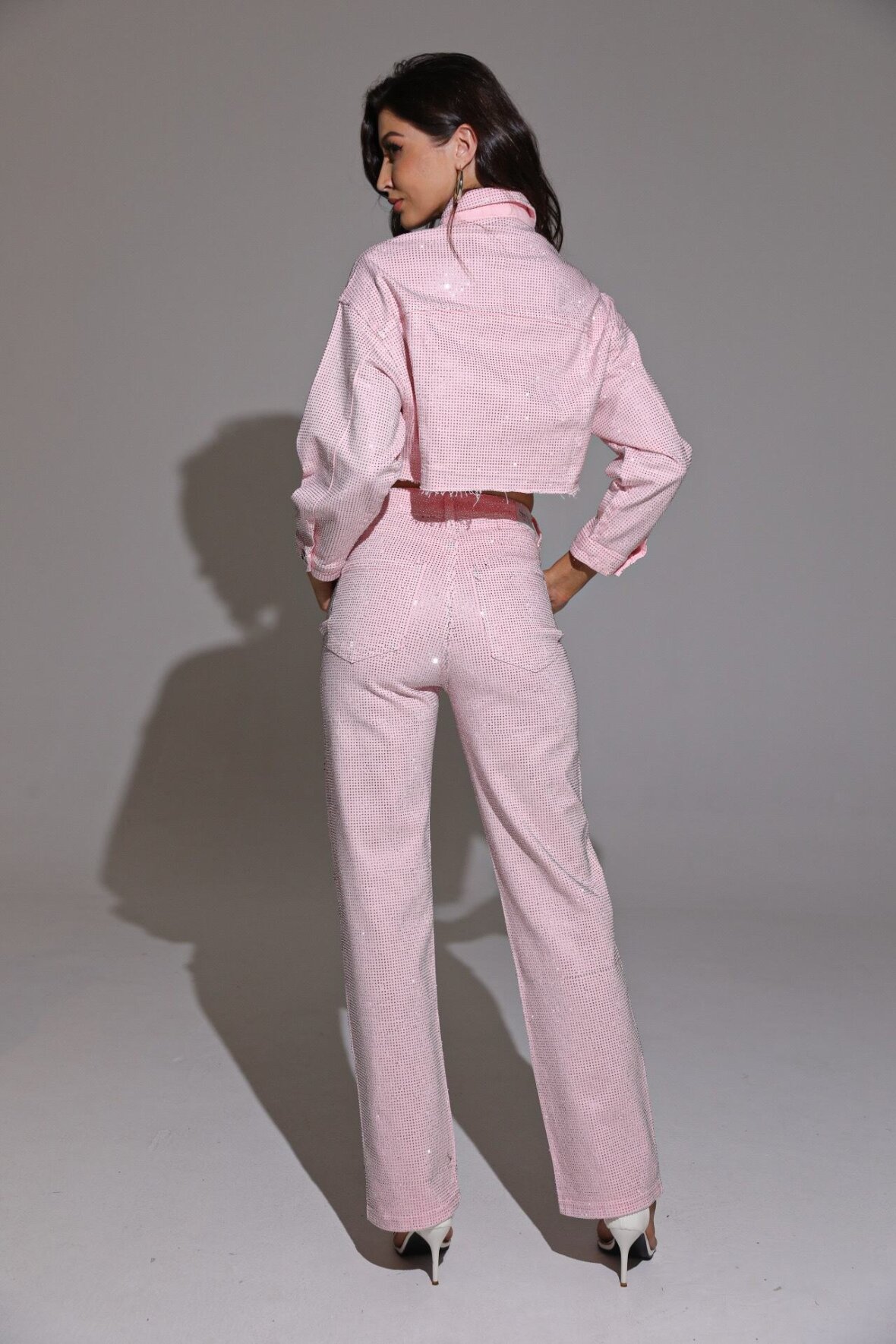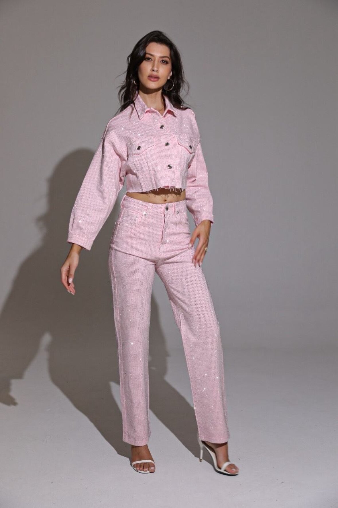 Denimjakke i smuk rosa nuance med glimmer-effekt, der giver et eksklusivt og feminint udtryk. Modellen har klassisk krave, knaplukning og brystlommer. Jakken er designet i en moderne oversize pasform og indeholder stretch, som giver ekstra komfort og gør den nem at style til både fest og hverdag.