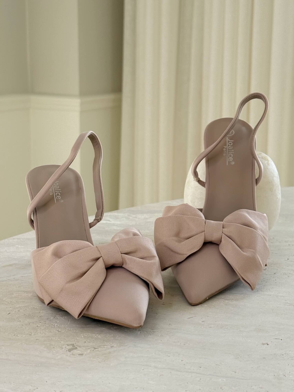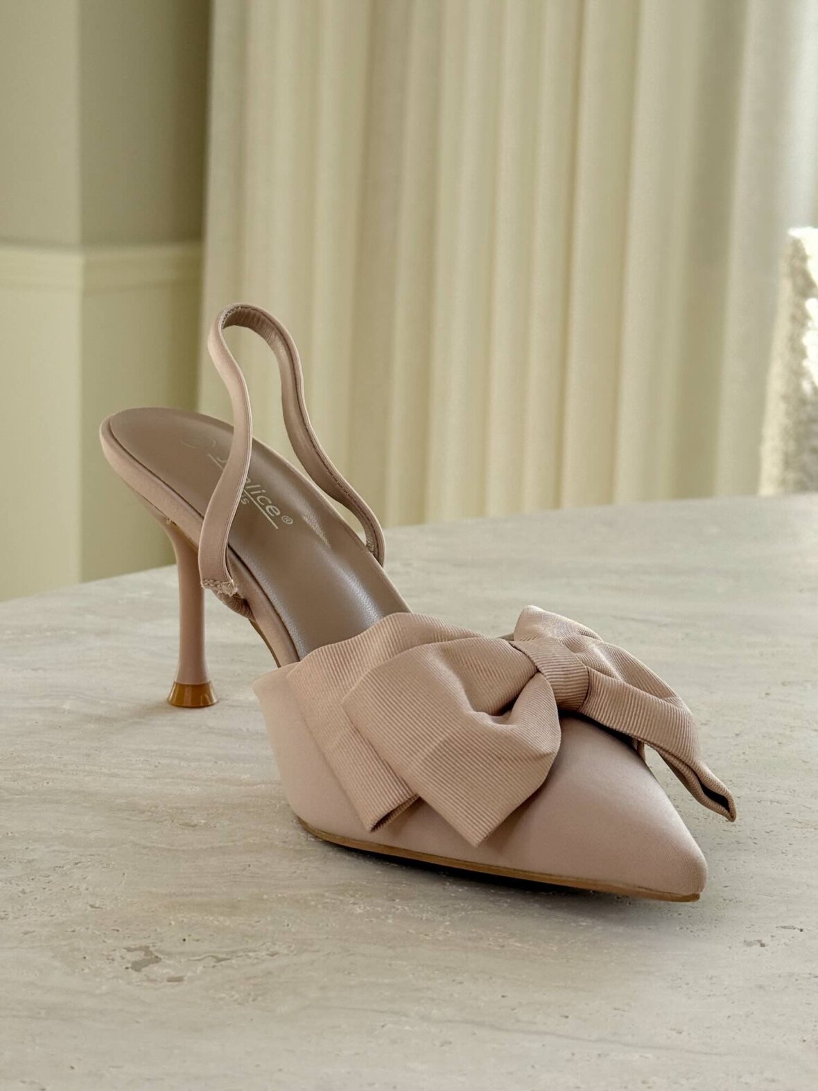 Elegante stiletter i en smuk nude nuance med feminin sløjfedetalje, der tilfører et sofistikeret og romantisk udtryk. Den spidse snude og fine hæl giver et stilrent look, mens slingback-designet sikrer en let og behagelig pasform. Perfekte til fest, events og elegante hverdagsstyles.