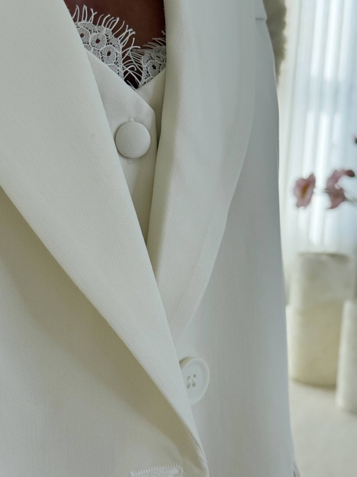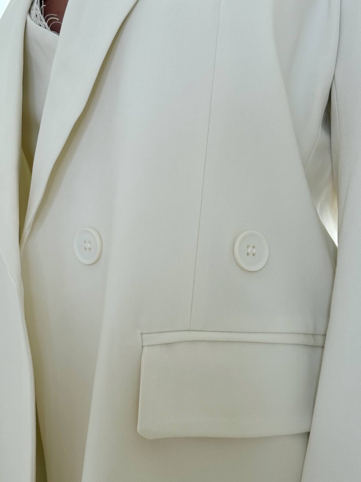Elegant oversized jakke i klassisk hvid med et moderne, afslappet snit. De rene linjer og stilrene detaljer giver et eksklusivt og tidløst udtryk, mens den løse pasform sikrer komfort og bevægelsesfrihed. Perfekt som sæt med matchende bukser eller stylet over både festlige og casual looks.