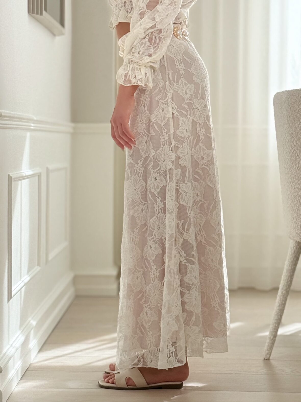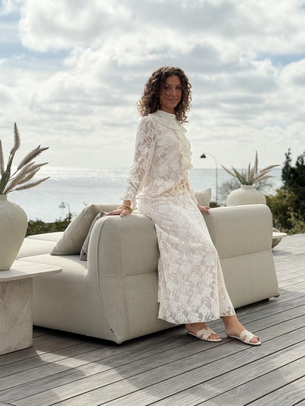 Elegant nederdel i en smuk cream nuance med fine blonde detaljer, der giver et romantisk og eksklusivt udtryk. Den let transparente blonde skaber en feminin silhuet, mens den bløde underdel sikrer komfort og en flot pasform. Nederdelen falder let og luftigt, hvilket giver en smuk bevægelse. Perfekt til både festlige anledninger og stilfulde hverdagslooks. Style den med en enkel top eller en elegant skjorte for et sofistikeret outfit. En tidløs nederdel, der tilfører garderoben et feminint og luksuriøst touch.